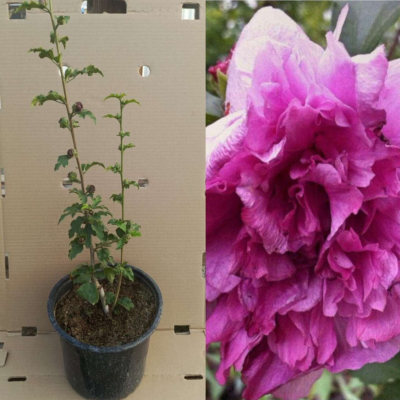 Фасовки 1шт. Многолетнее растение. Цветёт большими махровыми фиолетовыми цветами диаметром 8–15 см, период цветения растянут, с июля по октябрь (до заморозков). Куст вырастает от 1,5 до 3 метров. Любит солнечные и безветренные участки.